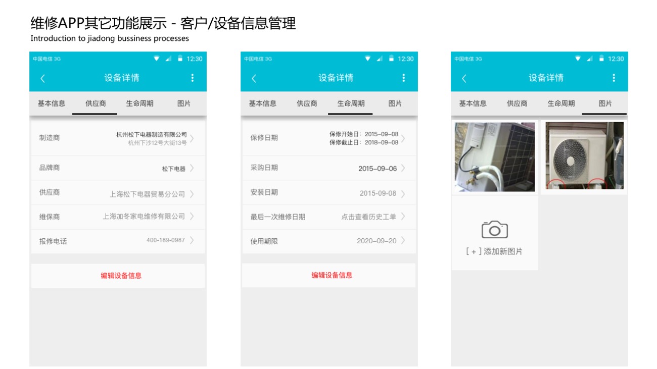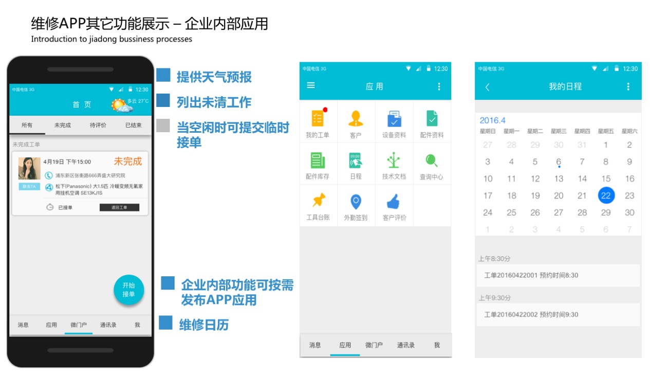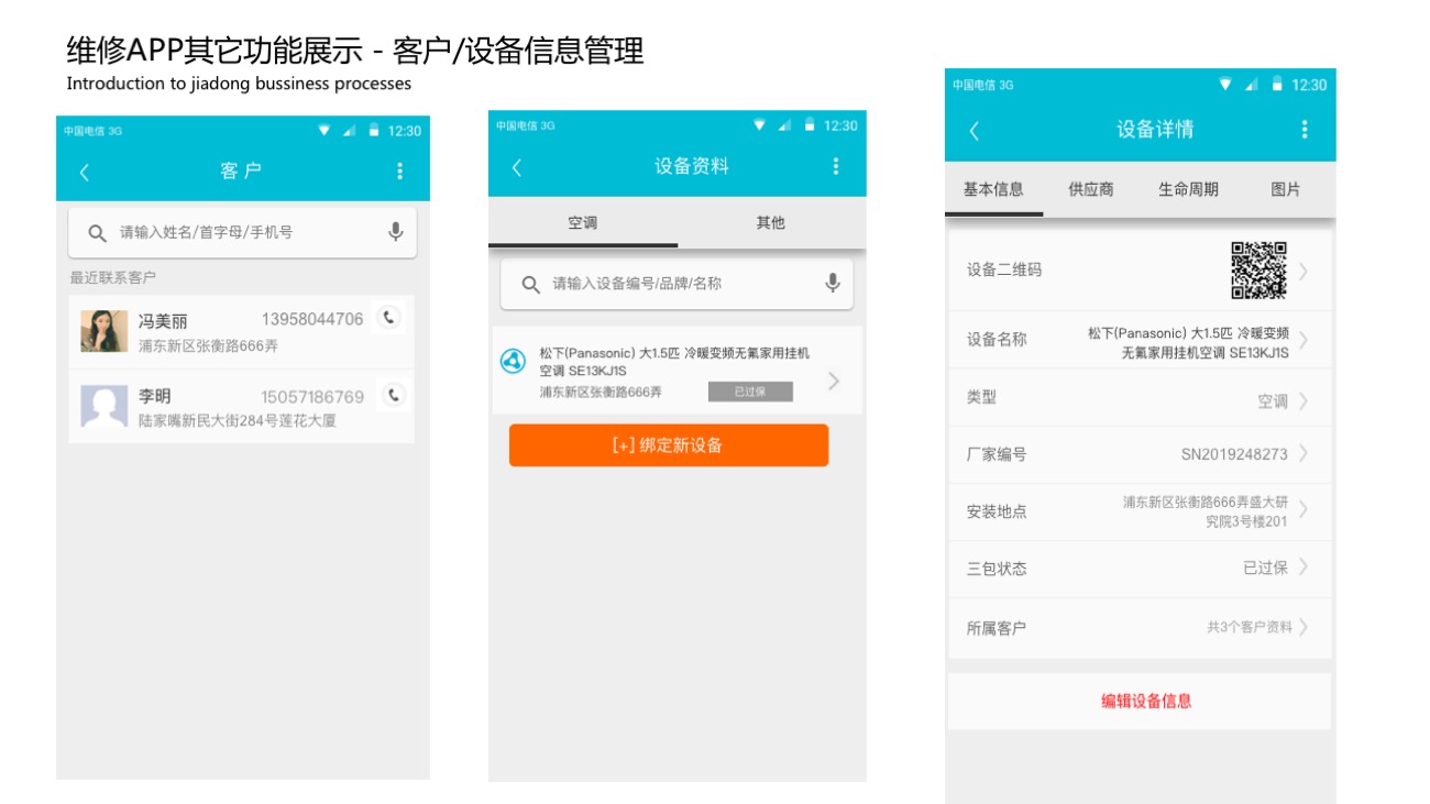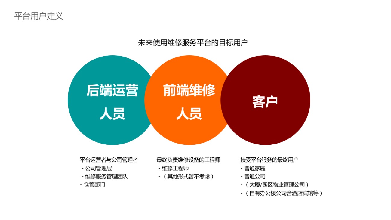平台包含客户端APP(苹果版+安卓版)、维保端APP(安卓版)和运营平台三大部分。