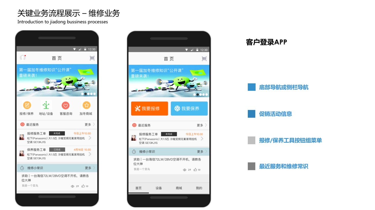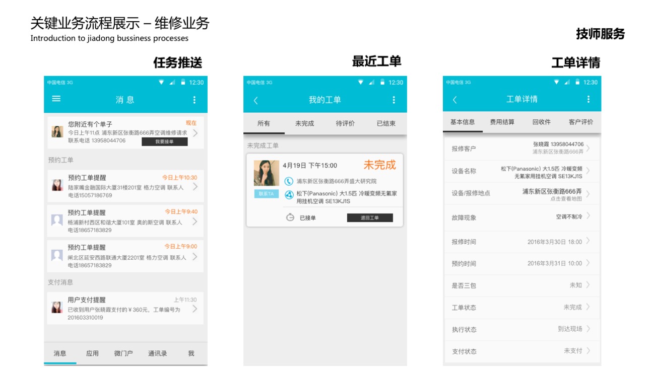 - 客户端能够实现维修服务、回收服务、销售业务等功能