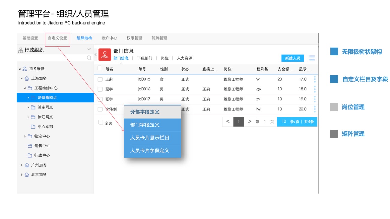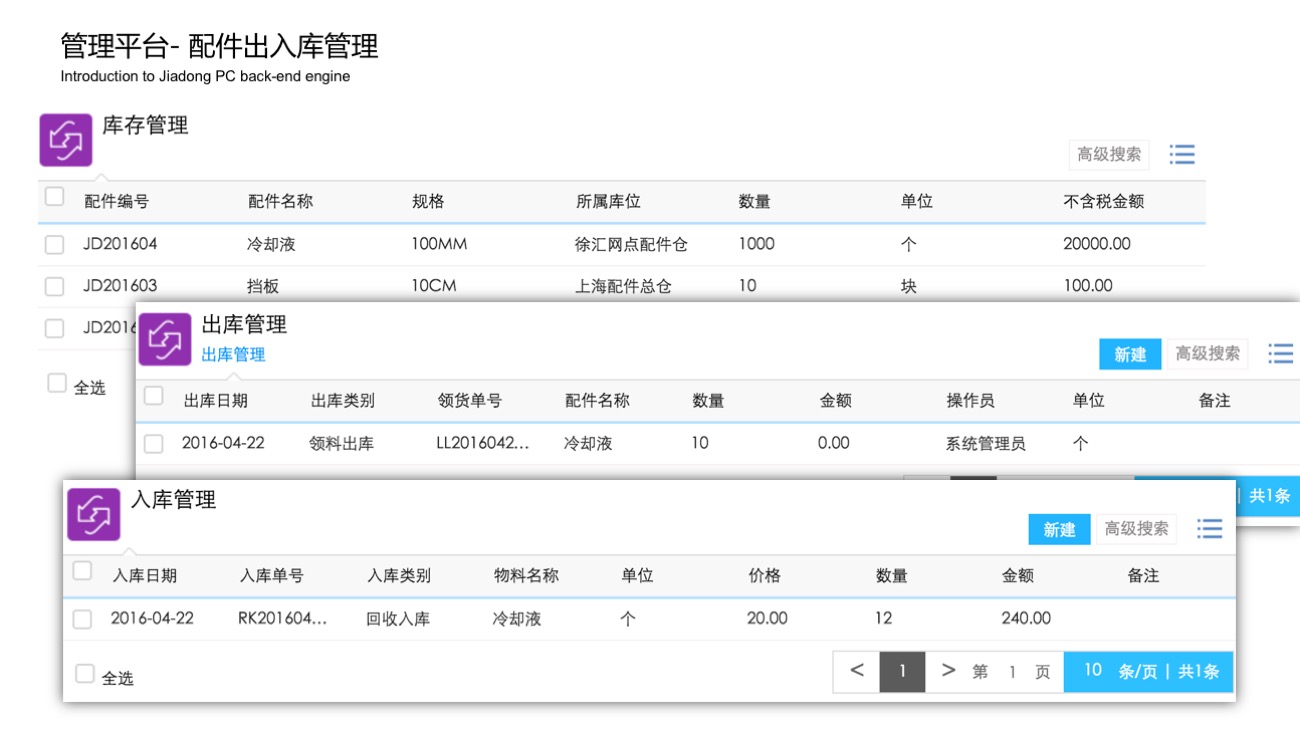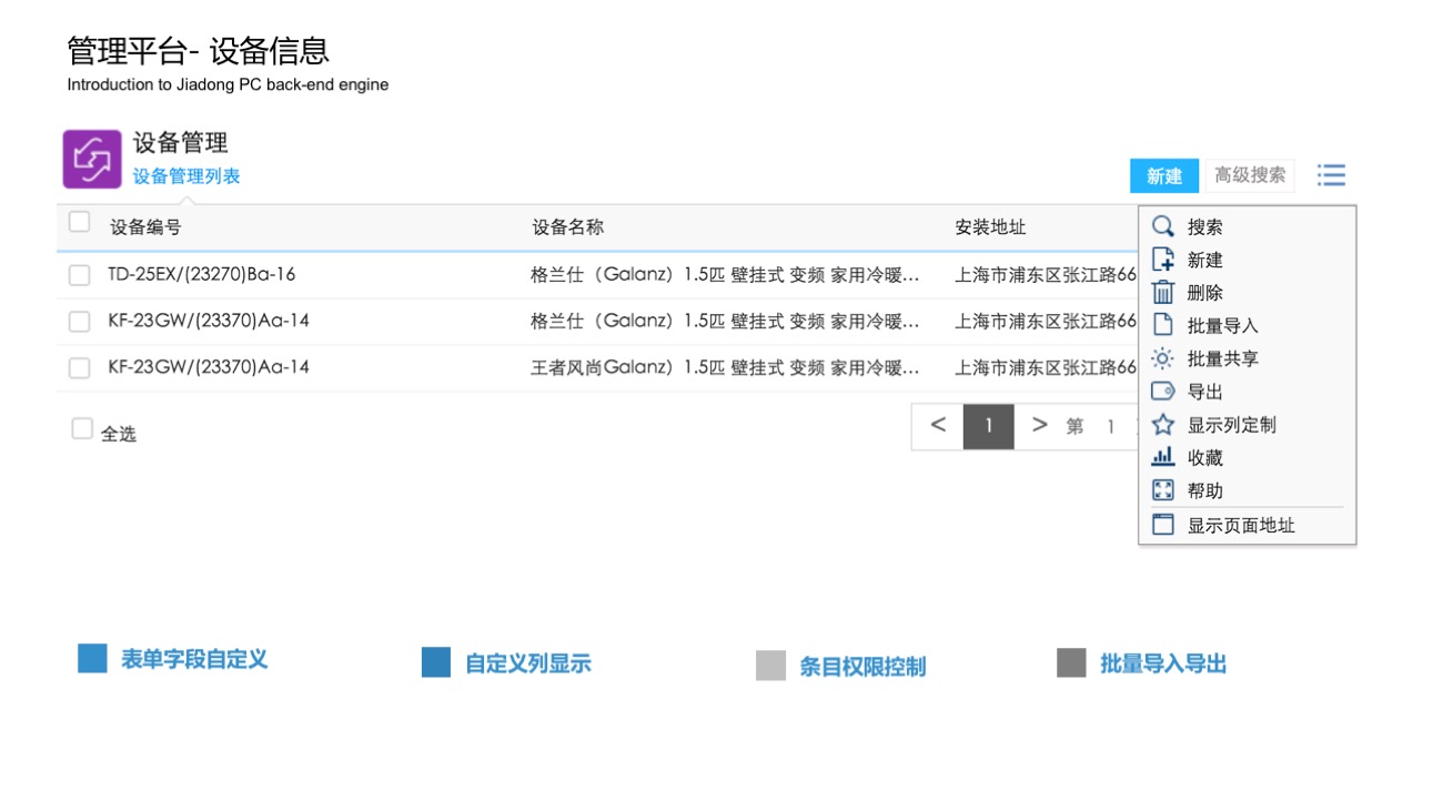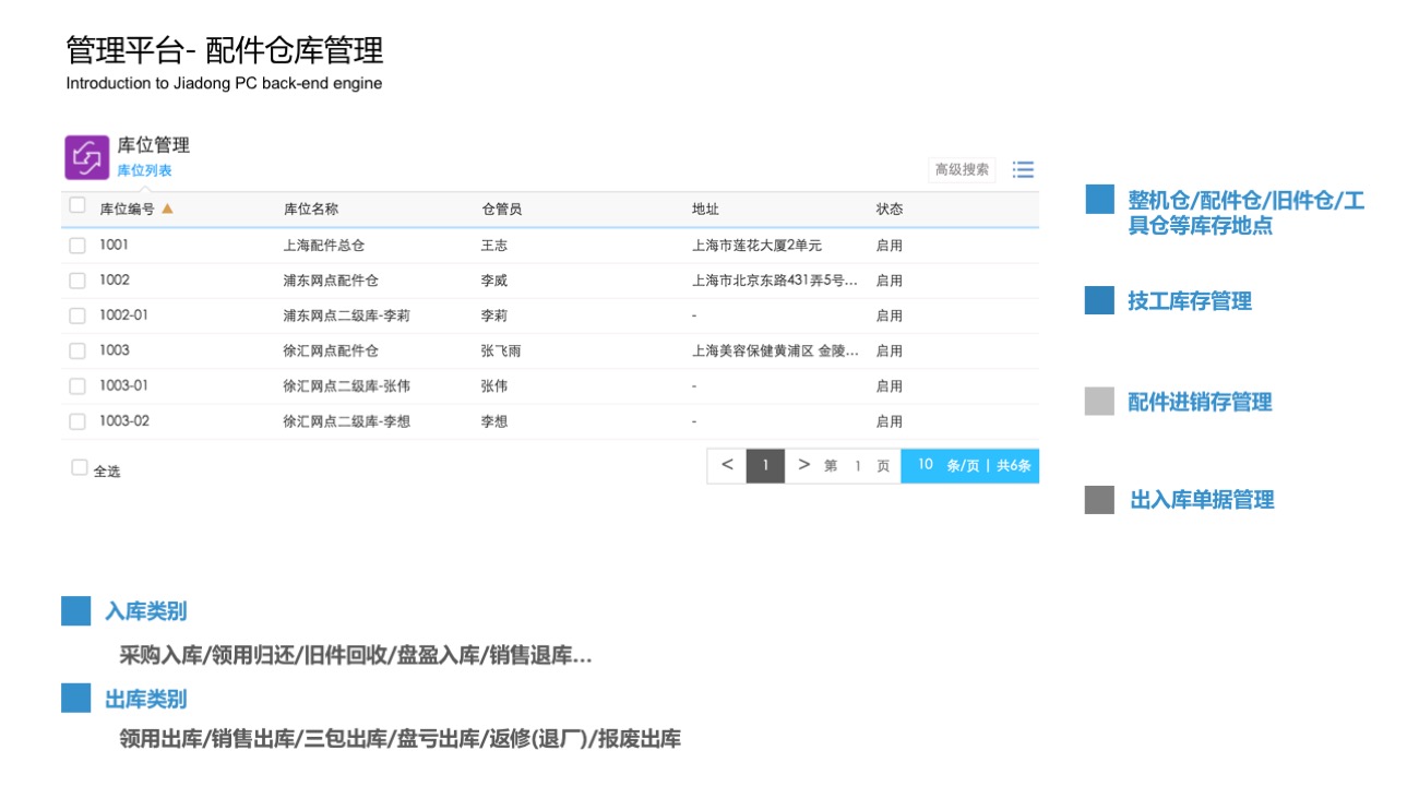 - 售后服务平台是综合管理平台,切分成多个管理与操作功能,根据不同岗位、角色、安全级别和业务需求进行权限管理。功能包含:客户管理;设备管理(客户、设备与工单三方关联);技工管理;工单管理;物料管理;知识管理;费用管理(工时、物料、工具定价,损耗额度规则);系统管理等等