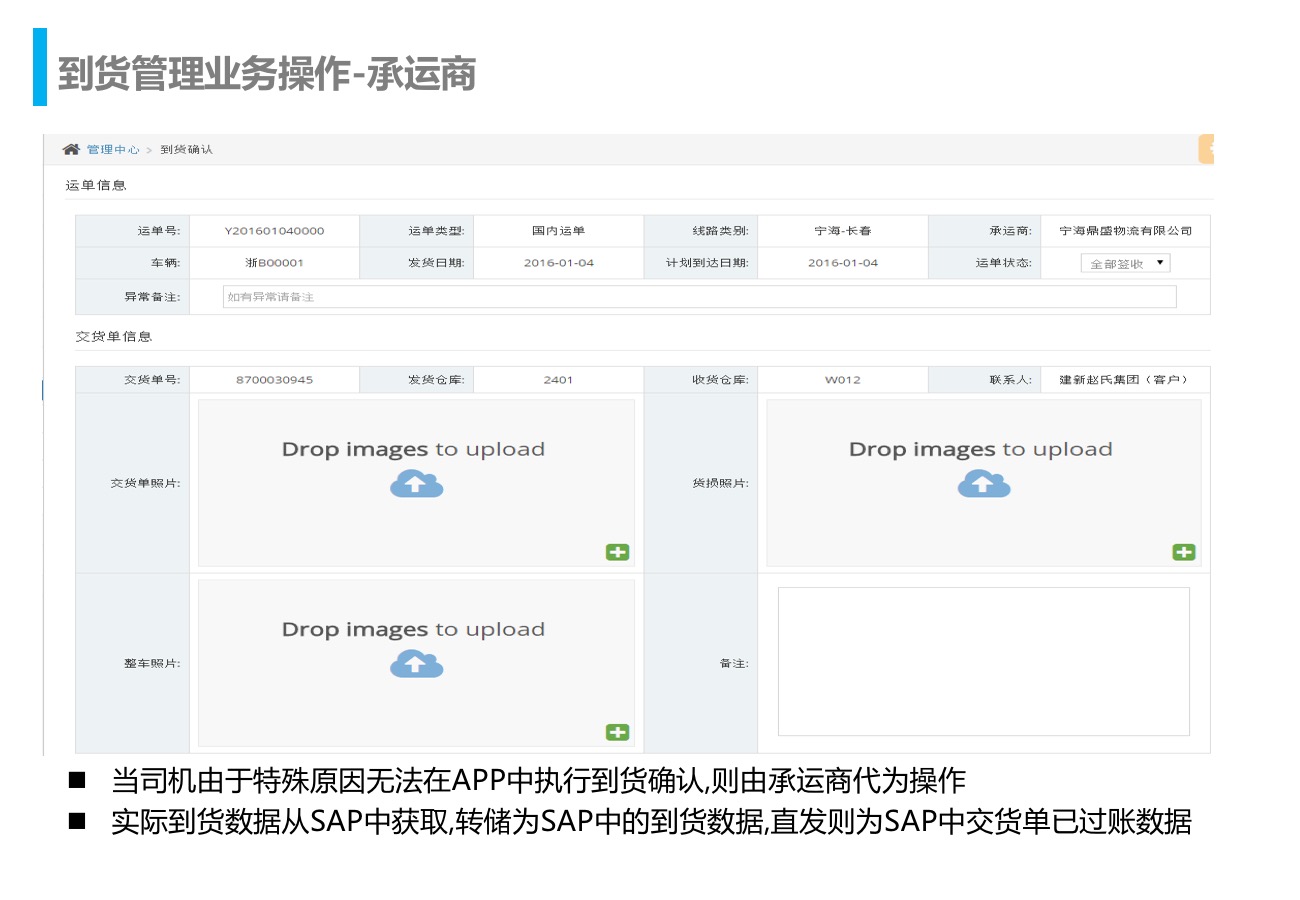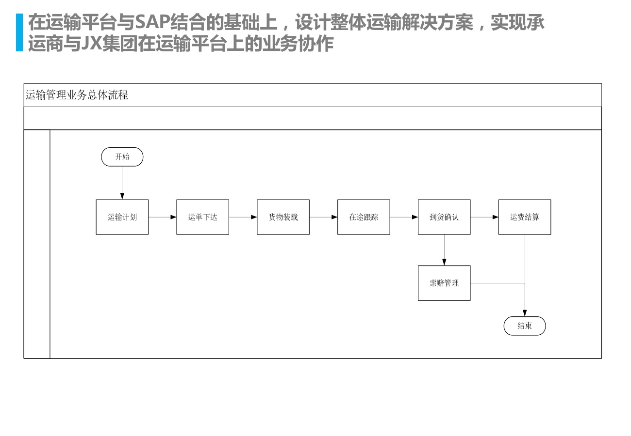 在运输平台与SAP结合的基础上,设计整体运输解决方案,实现承运商与集团在运输平台上的业务协作。TMS与SAP的集成整合,真正实现了与承运商之间的业务协同;整个方案实时掌控了从运输计划到运输途中,最后到运输结算的所有节点,且更有效的控制运输的成本及运输中由于信息不畅出现的各种风险。